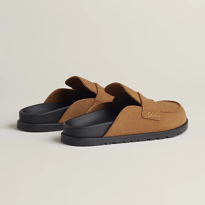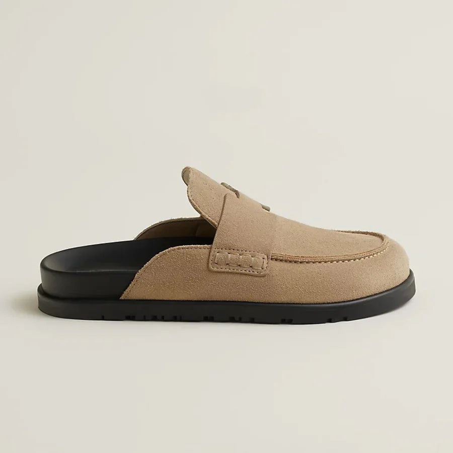 Eleganz und Komfort vereinen sich in diesen Mokassin-Mules aus weichem Veloursleder.